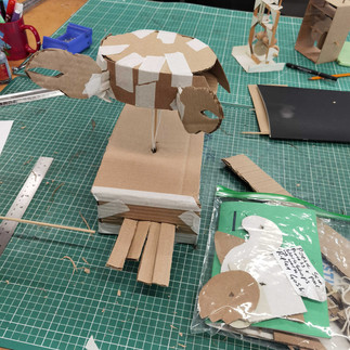 During the drawing workshops, we explored narrative life drawing techniques and experimented with overhead projectors (OHPs) to magnify our artwork. In the initial workshop, we delved into capturing movement and dynamic scenarios. Our task was to construct a five-panel narrative depicting a witch's unsuccessful attempt to conjure tea through a spell, ultimately resorting to making it conventionally. The narrative was enacted by Maeve, a life model. In the subsequent workshop, we condensed small artworks into a three-panel narrative and enlarged them using OHPs. My narrative revolved around a hermit crab upgrading its dwelling.